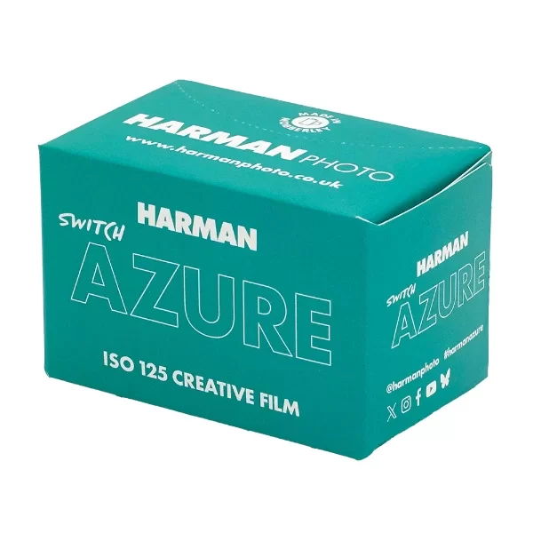 HARMAN SWITCH AZURE 35mm es una película negativa de color creativa de 125 ISO, disponible en 35mm y 120, que invierte los colores para obtener tonos surreales y vibrantes. Similar a la emulsión Phoenix, transforma azules en naranjas, amarillos en cian/azul y rojos en púrpura.